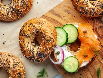 Smoked Salmon (Lox), Capers, Red Onion Slices,