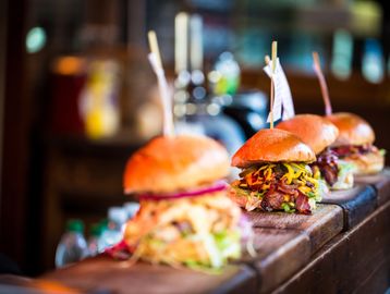 Slider Bar – Mini burgers, pulled pork, fried chicken sliders with toppings